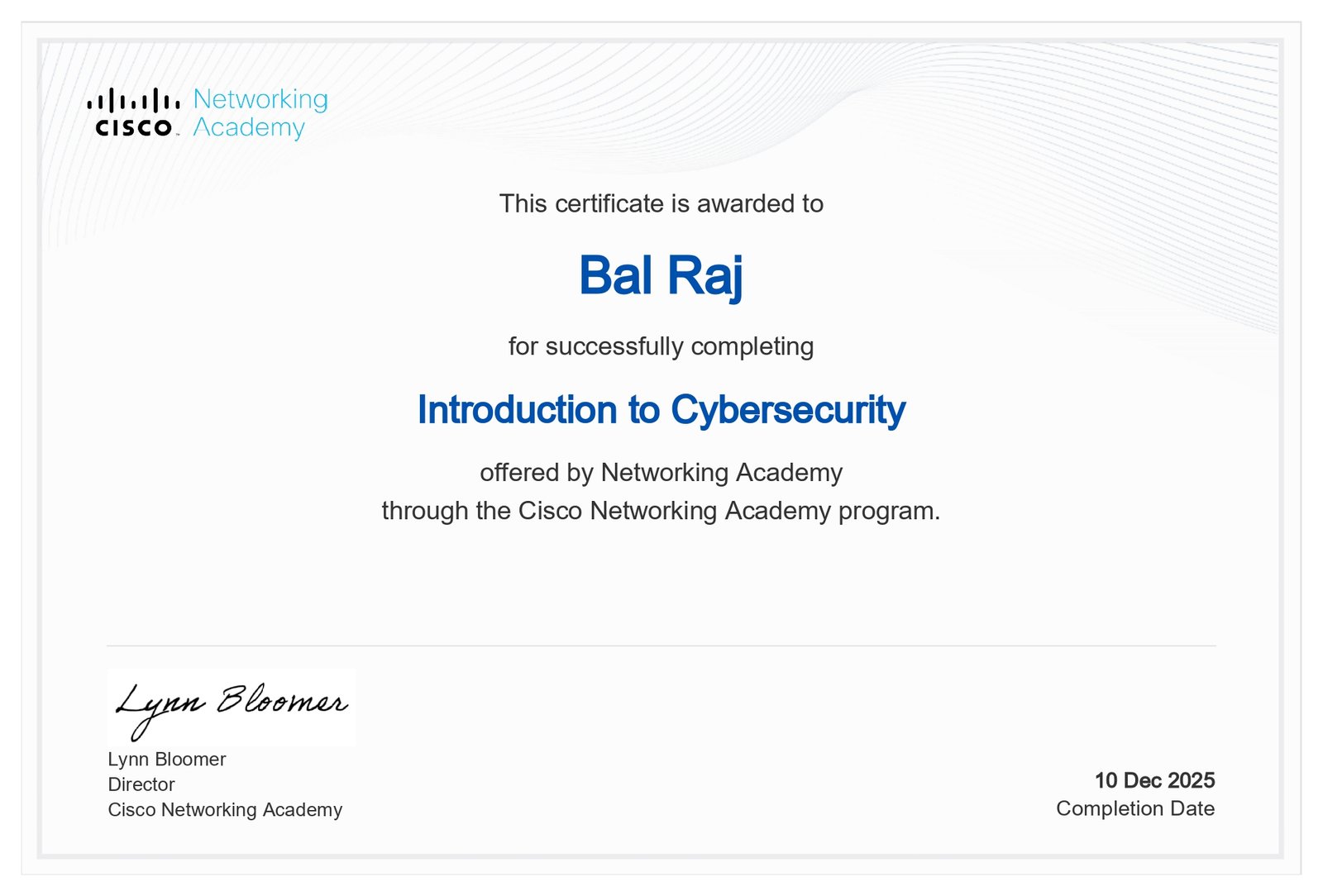 14Introduction to CybersecurityCISCO Networking Academy2025, Dec 10